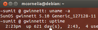 Why does it just tickle me to see some outrageous uptime on L’Unix servers? I was just logged in to a remote Solaris server to help a user. I didn’t know their username so just hit the “w(ho)” command real quick. Then noticed the uptime – wow. (and yes – double checked the date on the machine, just to be sure)